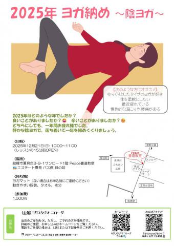 また、陰には「静けさ」や「納める」といった性質があります。静かに一年を納めるのにピッタリですね。2025年の年納めは陰ヨガに決まりです。